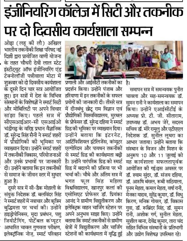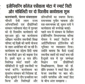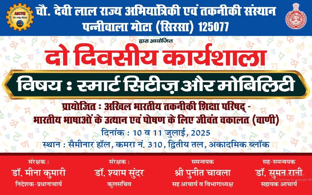 एआईसीटीई द्वारा प्रायोजित दो दिवसीय कार्यशाला की सूचना विवरणिका