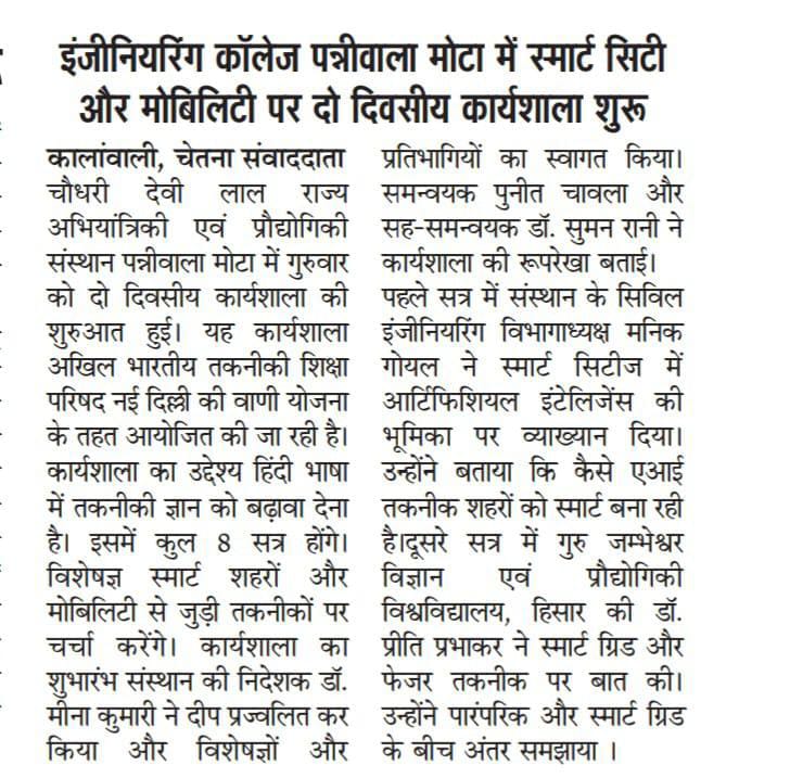 The primary objective of the workshop is to orient participants and provide them with comprehensive knowledge on various aspects of Smart Cities and E-Mobility, with a special focus on Hindi language. The workshop aims to train participants in latest technologies involved in the development of Smart Cities, which contribute to making urban spaces more livable, inclusive, and sustainable. Additionally, it will cover advancements in E-Mobility, including use of diverse energy sources and enhancements in flexibility and resilience of the transport sector. This initiative seeks to equip faculty members and researchers with the insights needed to engage in meaningful discussions on these topics and to guide students towards innovation-driven learning.
