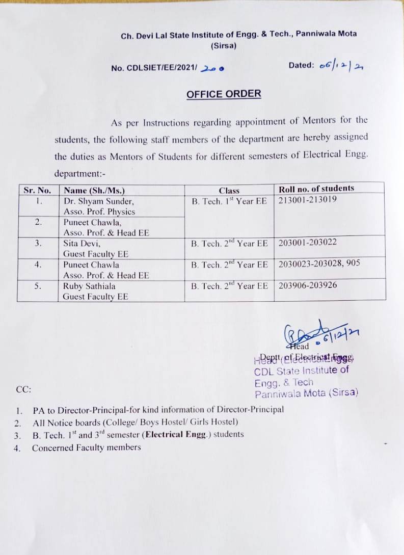 | Sh. Puneet Chawla | Head of Department and Associate Professor (EE) | Click Here | ![]() |