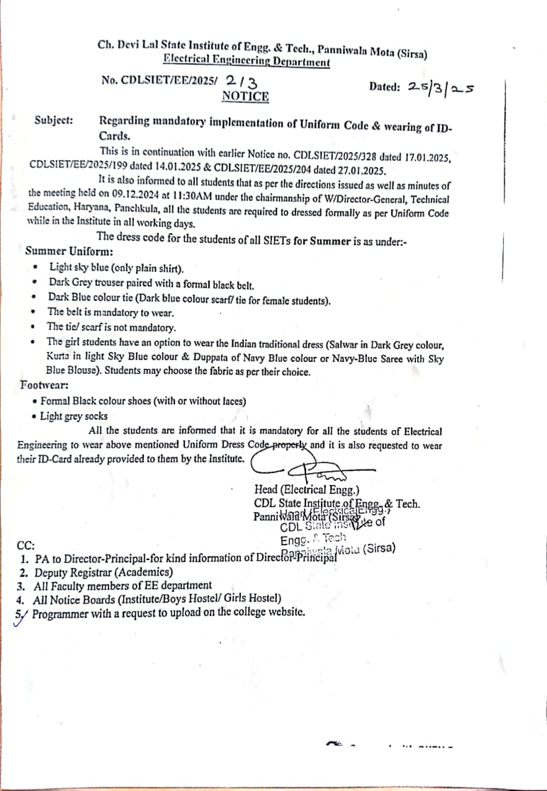 Home / Notice Regarding mandatory implementation of uniform Code & wearing of ID- Cards.