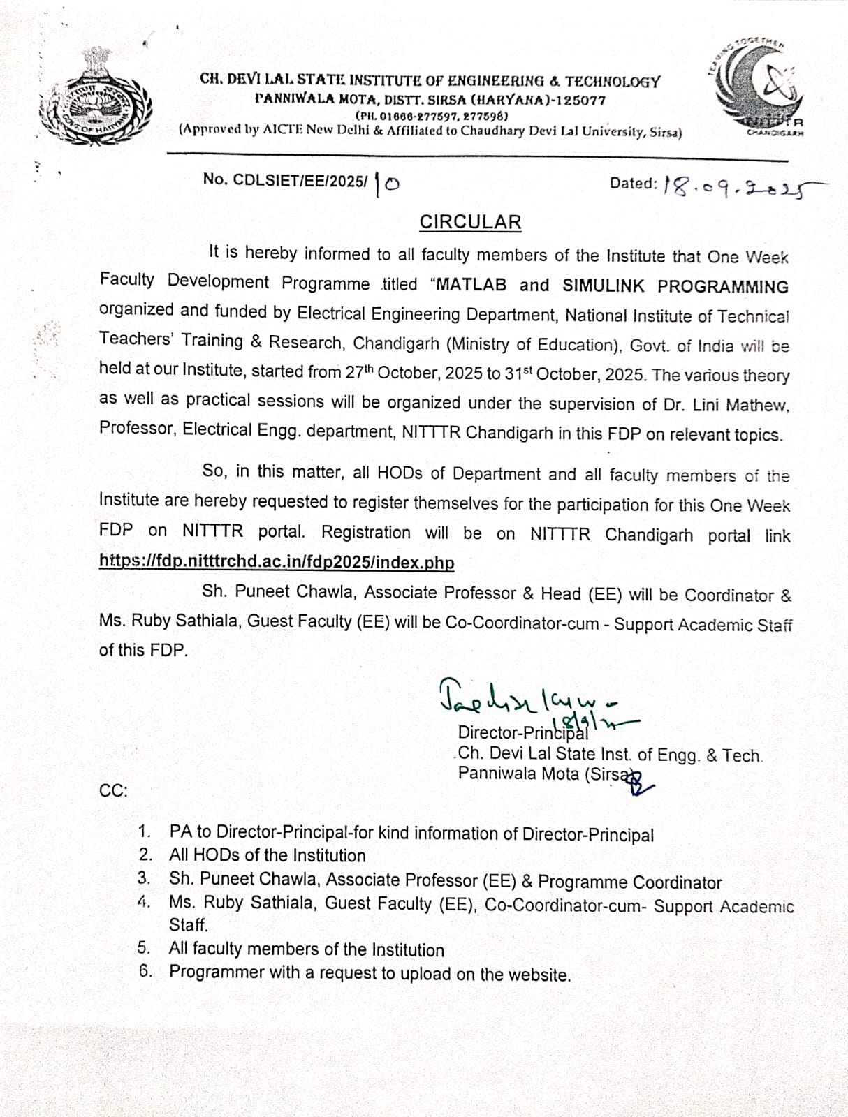 Notice regarding One week Faculty Development Programme 27.10.25 to 31.10.25.